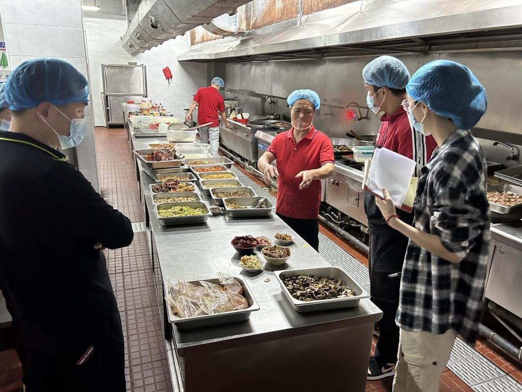 检查组一行深入超市、餐厅、厨房、库房(粮库、调味仓库等),重点查看了超市食品、食堂用水用电、场所安全通道、环境卫生、食品卫生、消防安全、餐具消毒等情况。每到一处,检查组都认真听取场所负责人的详细介绍,仔细核对台账记录,并与工作人员进行交流,了解日常操作流程和食材处理情况。