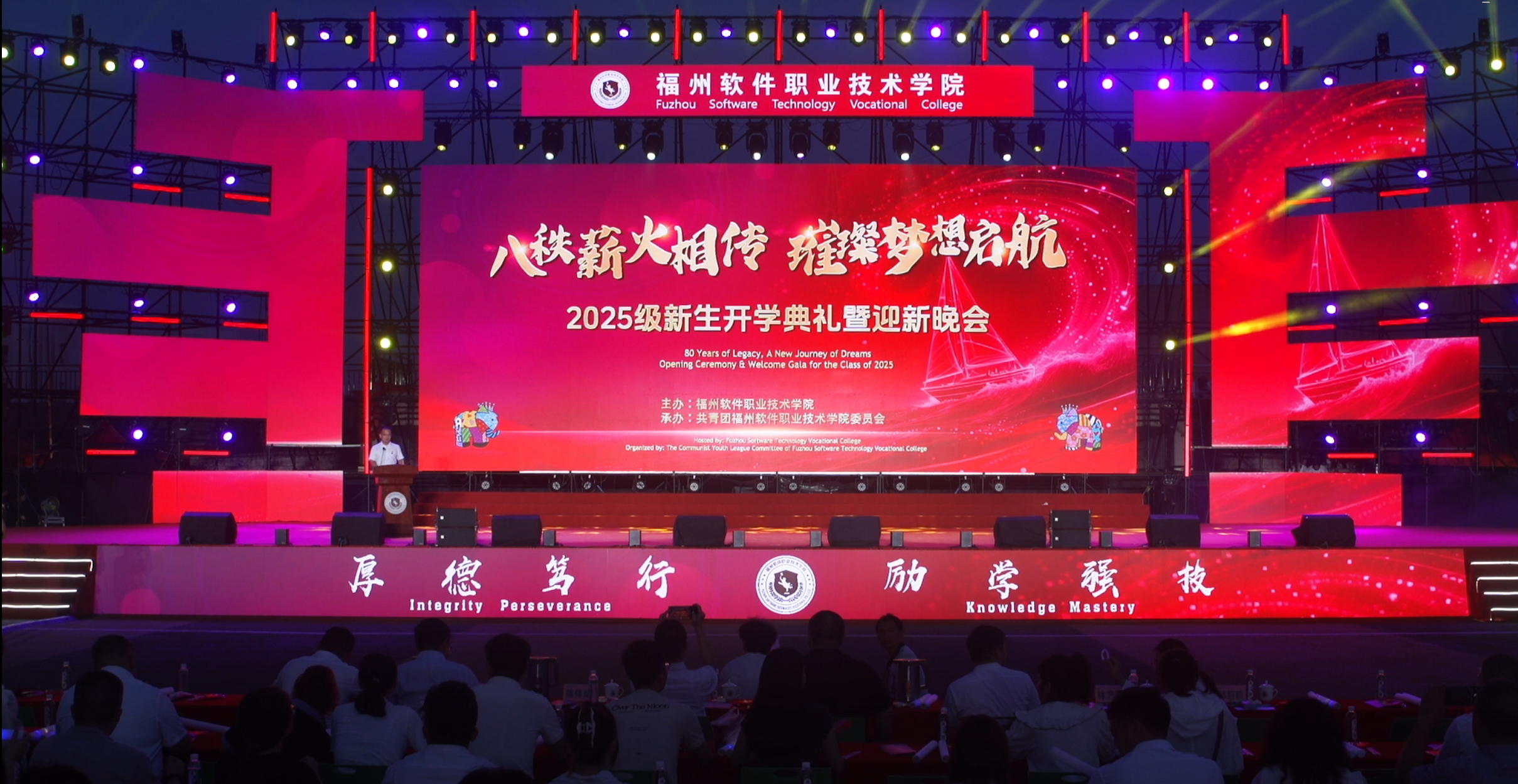 金秋送爽启新程,丹桂飘香迎学子。9月29日晚,福州软件职业技术学院2025级新生开学典礼暨迎新晚会在文岭本部田径体育场隆重举行。共青团长乐区委员会书记陈伟斌,学校理事会理事长俞飚,学校领导马勇、林土水、林艺勇、李晋、邹莉莉、柯建琳等出席典礼,各教学单位、职能部门负责人,在校教职工及全体2025级新生参加典礼。典礼由校党委副书记林艺勇主持。