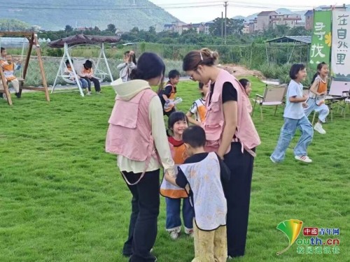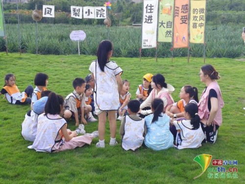 为农场主王森谅正在为南山创意艺术馆的孩子们教授特色农业科普课。林竞男 供图