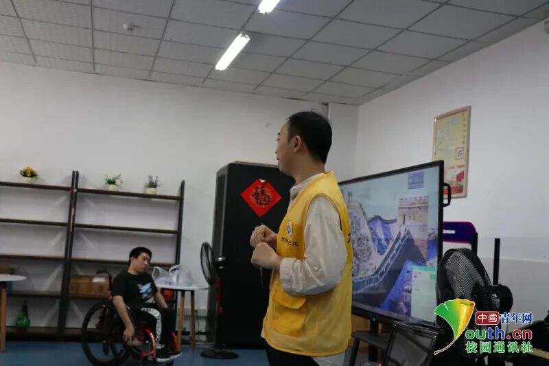 图为福利院工作人员介绍志愿者的到来。吴运生 供图
