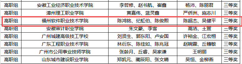 我校建筑智能化工程技术专业陈鸿铭、纪虹伯、陈俊熙三位学子在指导教师吴健平、陈超杰的悉心指导下,凭借过硬的专业技能和创新实践能力,从全国各省市参赛队伍中脱颖而出,最终斩获全国总决赛三等奖。