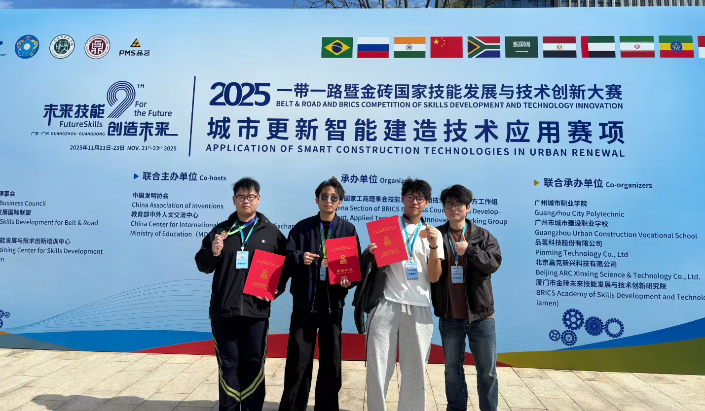 近日,“2025一带一路暨金砖国家技能发展与技术创新大赛之城市更新智能建造技术应用赛项”全国总决赛在广州圆满收官。本次大赛由金砖国家工商理事会中方理事会、一带一路暨金砖国家技能发展国际联盟等联合主办,吸引了全国400支实力强劲的高校队伍同台竞技。