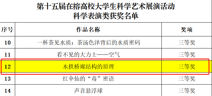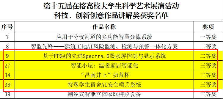 在福州市科学技术协会、共青团福州市委员会、福州市教育局联合主办的第十五届在榕高校大学生科学艺术展演活动中,我校喜获佳绩!学校获评 “优秀组织单位奖”;学生作品《木拱桥廊结构的原则》获科学表演类三等奖;《基于 FPGA 的先进 Spectra 6 墨水屏控制与显示系统》获科技、创新创意作品讲解类二等奖;《智能小屋:温暖家居智能化》《“昌南井上” 奶茶杯》《特殊学生宿舍 AI 安全哨兵系统》获科技、创新创意作品讲解类三等奖;其中《“昌南井上” 奶茶杯》另获 “最受欢迎科创之星奖”。特此报喜,向获奖师生致以热烈祝贺!