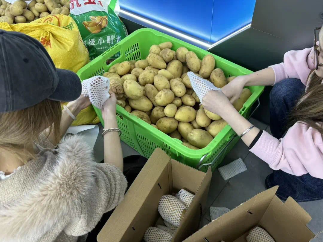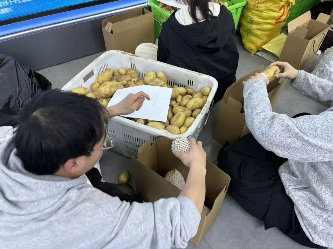 经过“趣耕”劳动教育联合志愿服务队干事们连日的分拣、打包,一颗颗饱满的土豆被精心分装成精美礼盒,送到各学院每位老师手中。这份礼盒承载的不仅是新鲜的薯果,更是服务队近一年来躬耕劳作的丰硕成果。劳动的价值在此刻具象化。