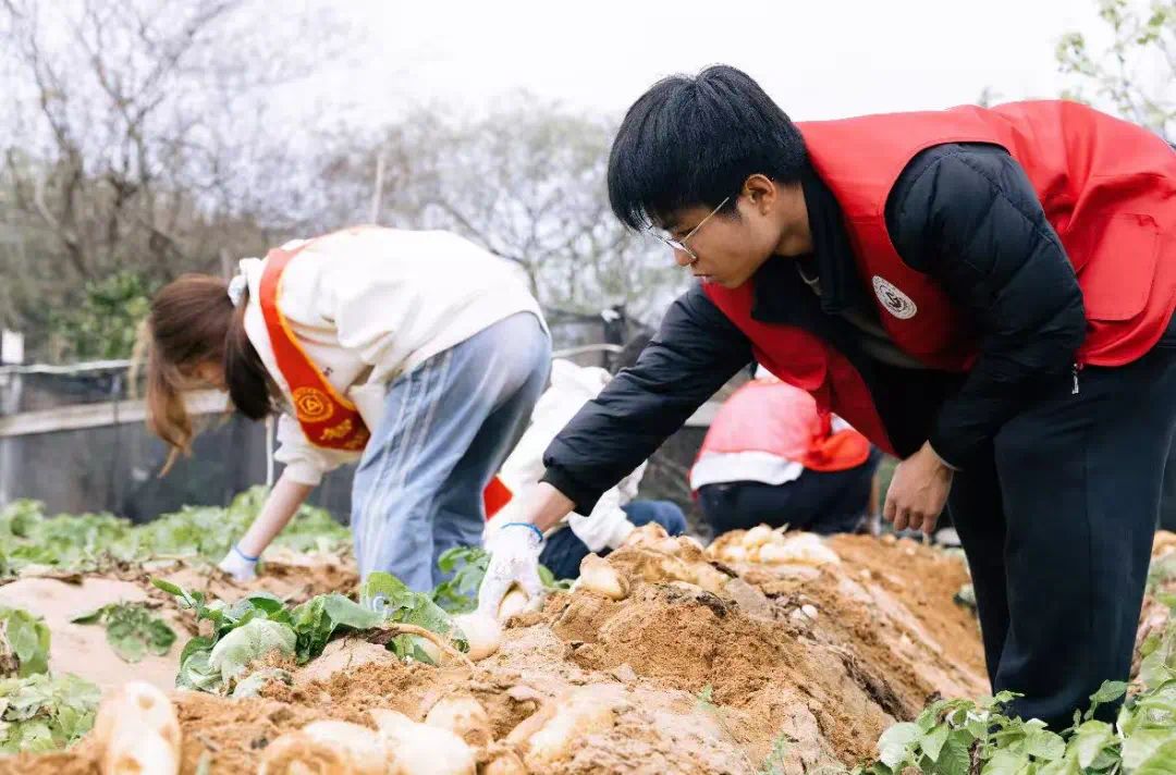 春日田间,泥土芬芳。在三院负责人的带领下,“趣耕”劳动教育联合志愿服务队的志愿者们奔赴田野,开启土豆丰收采摘。大家分工协作、干劲十足,从俯身刨土挖薯,到细心分拣装袋,再到接力搬运装车,每一个环节都有条不紊、毫不懈怠。从种植时的除草松土、施肥灌溉,到收获时的满载而归,志愿者们在亲手劳作中亲历耕耘的不易,在汗水中读懂劳动的价值,用双手收获最踏实的喜悦,让劳动精神在田间地头熠熠生辉。
