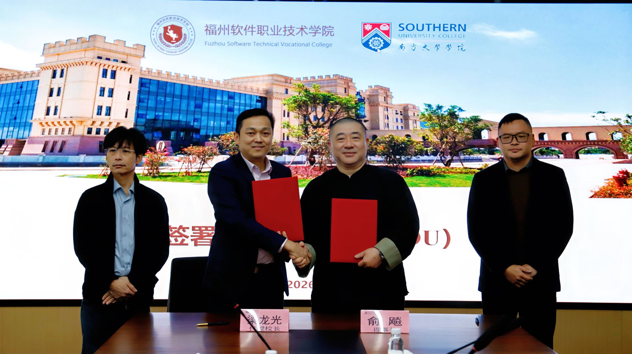 1月23日,马来西亚南方大学学院代表团到访福州软件职业技术学院。代表团通过校园参观、座谈交流等环节,深入了解我校办学特色与实训条件。双方于当日上午正式签署合作备忘录,并围绕课程共建、师资互访等方向开展务实对接,推动合作由“框架共识”迈向“项目落地”。