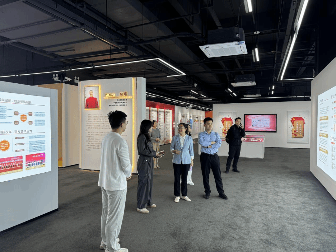 来访领导一行先后参观了校史馆、电竞馆、元宇宙体验中心及新技术体验中心,全面了解我校的办学历史、专业建设、产教融合及数字技术创新应用成果,对我校在游戏设计、虚拟现实、数字文创等领域的办学实力与实践成效给予高度评价。