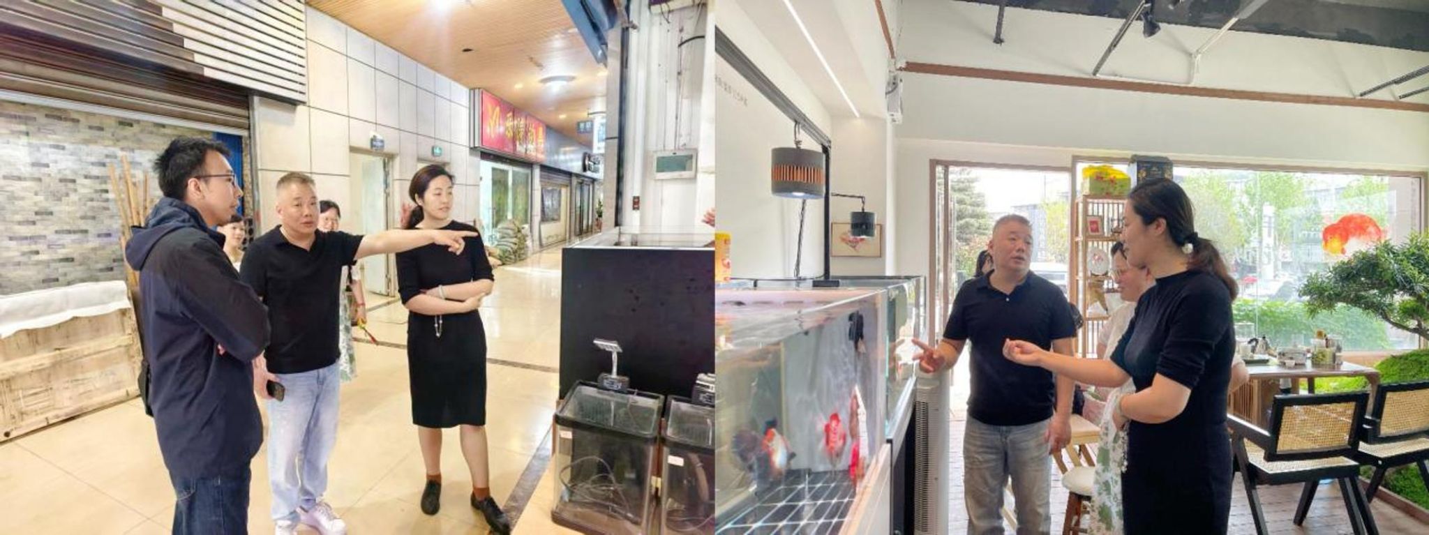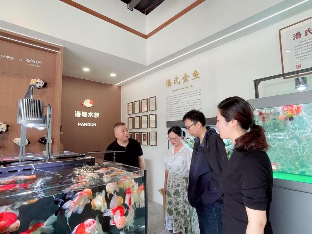 随后,在企业负责人的陪同下,徐颖院长一行深入潘氏金鱼养殖一线,近距离观察金鱼品种培育、日常养护流程,详细询问直播带货中金鱼展示、场景搭建等实操需求,进一步摸清岗位实操标准,为后续人才培养、技能训练找准方向,推动教学内容与企业实务精准接轨。