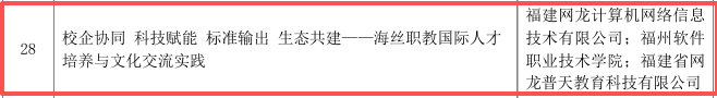 本次优秀案例评选经前期申报、专家研究等多环节严格筛选,全国共拟定90个优秀案例予以公示。在福建省仅3所院校案例入选的情况下,我校联合申报案例脱颖而出,而合作单位网龙更是此次评选中福建省唯一入选的企业,充分彰显了该案例在 “校企协同、产教融合” 模式创新、科技赋能职教输出等方面的突出优势。